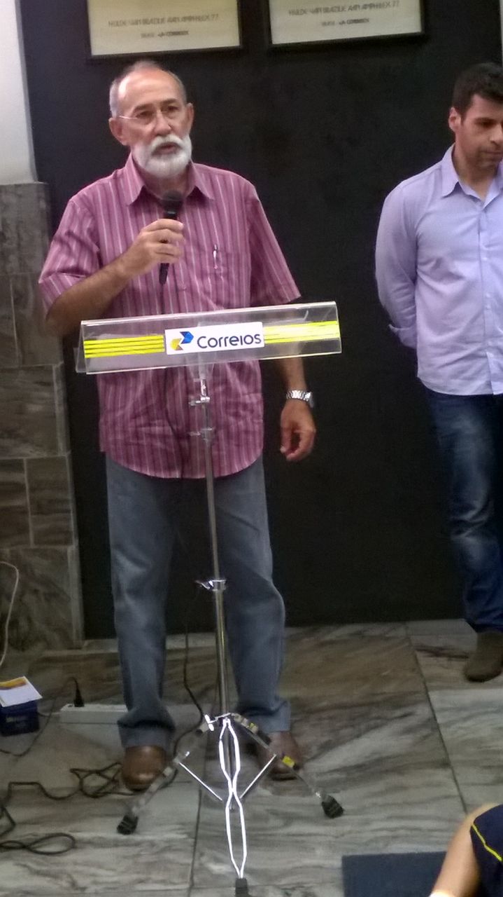 Professor do campus Santa Teresa discursa na cerimônia de lançamento de selo dos Correios