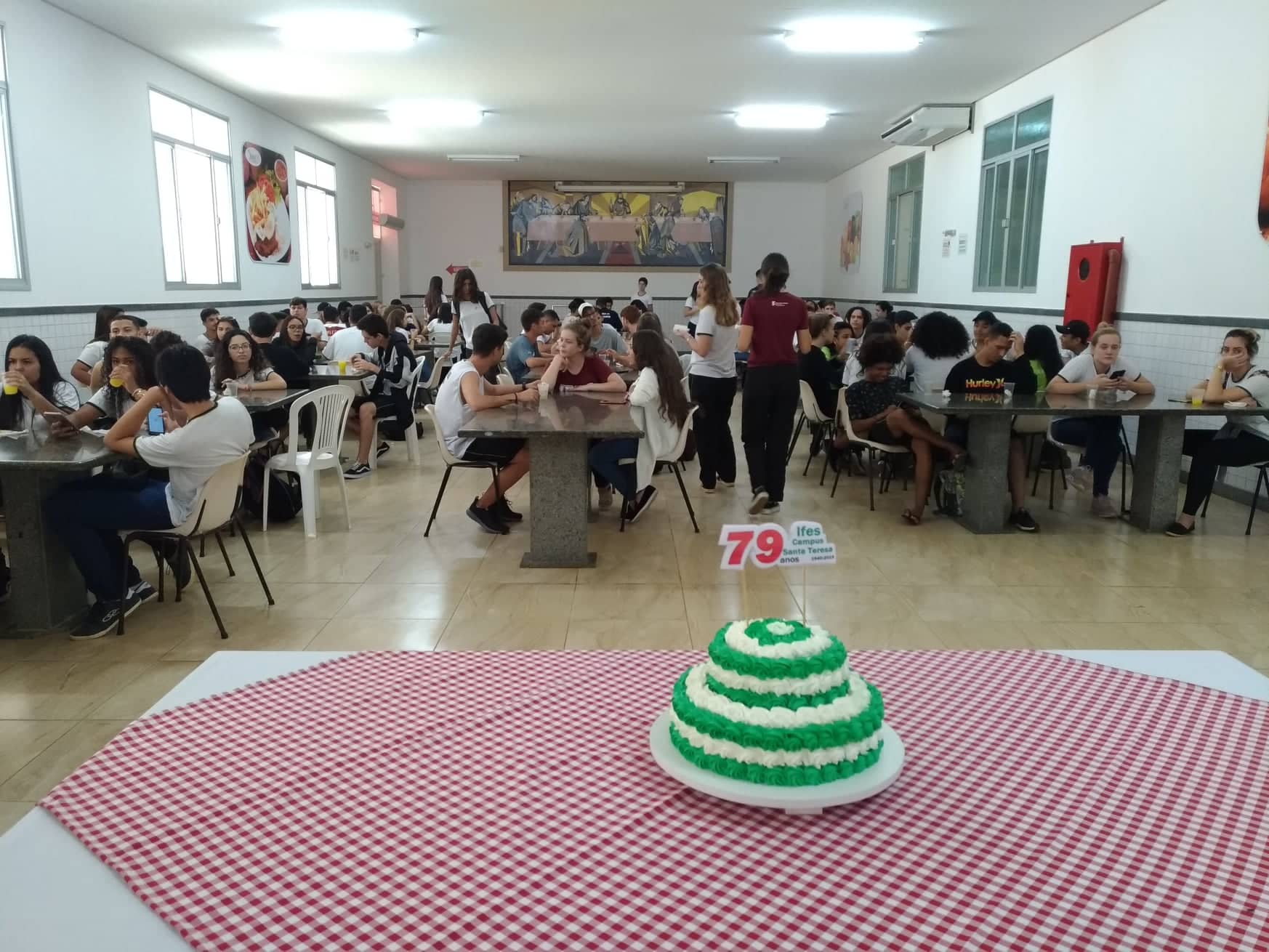 Para finalizar as comemorações, com o objetivo de comemorar com os diferentes turnos, no dia 06, às 9h30min e às 18h30min, estudantes e servidores degustaram um bolo feito especialmente para o momento.