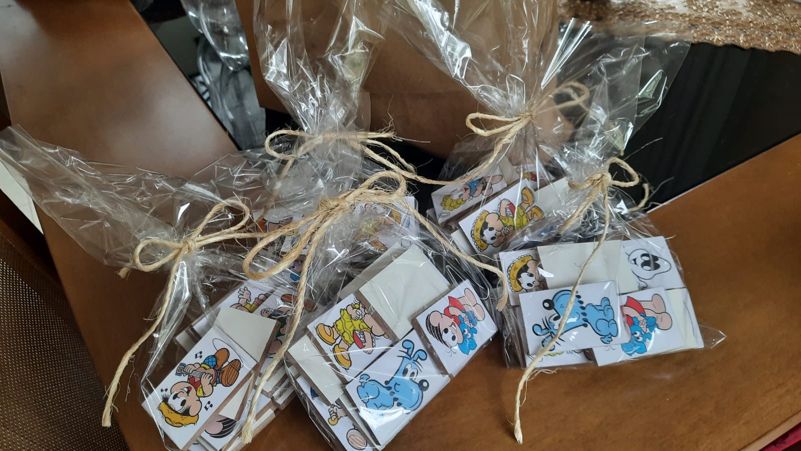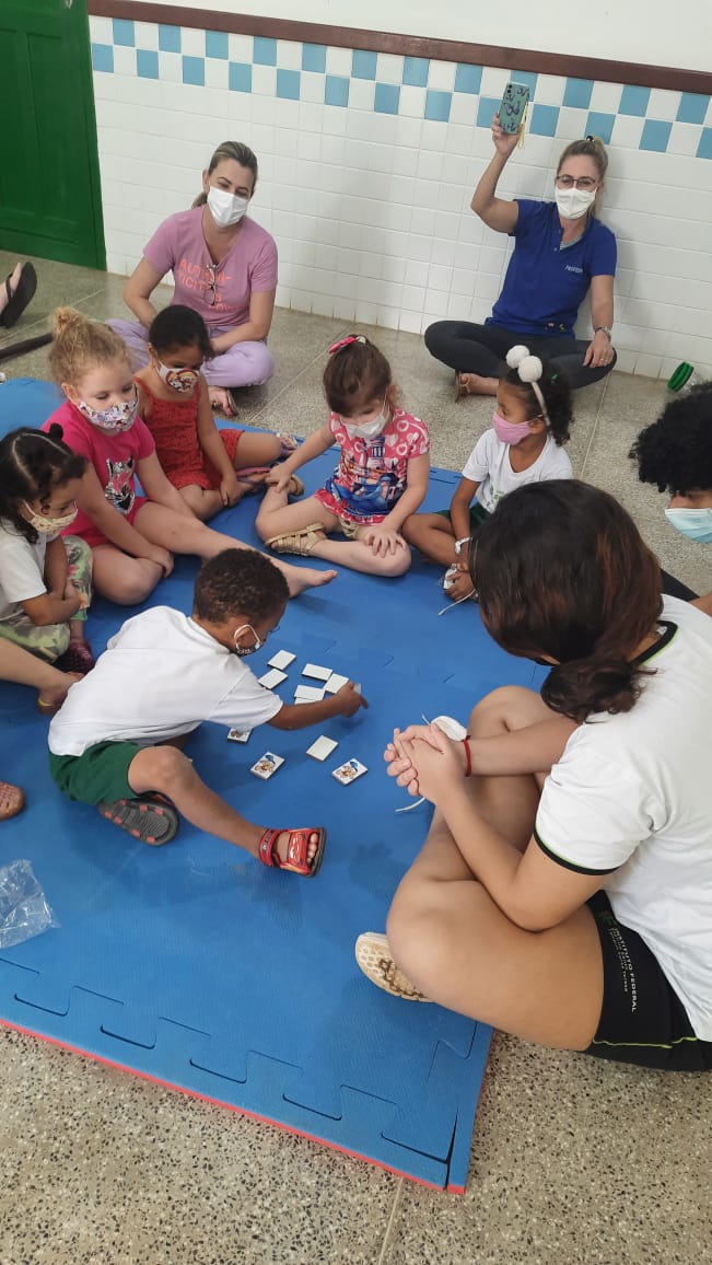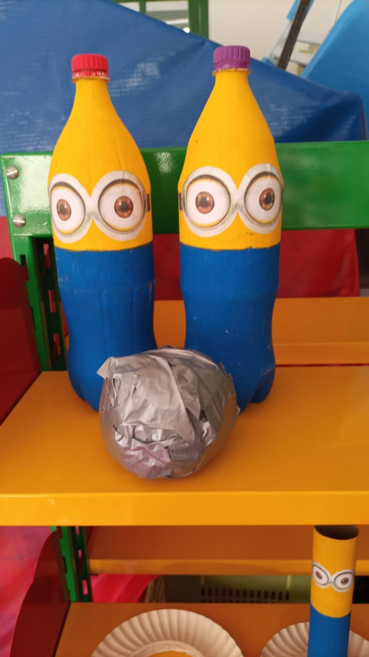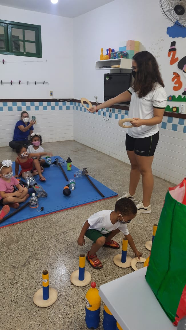 As crianças da Escola Municipal de Educação Infantil (EMEI) “Benjamin Bortolini” receberam bonecos, trenzinhos, jogo do cai-não-cai, jogo do vai e vem, aparatos de super-heróis, bilboquê – confeccionados com garrafas PET, retalhos, tampinhas e papelão doados pela comunidade – bem como jogos da memória – produzidos com materiais descartados por uma marcenaria do Município de Santa Teresa.